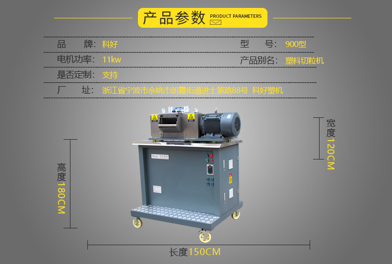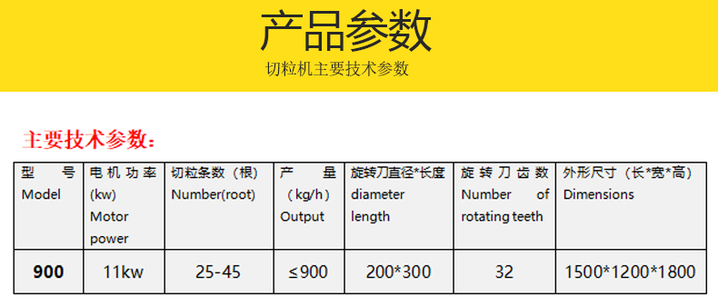 用途:900型塑料切粒機,建議切條數(shù)在25-45根,產能900kg/h。